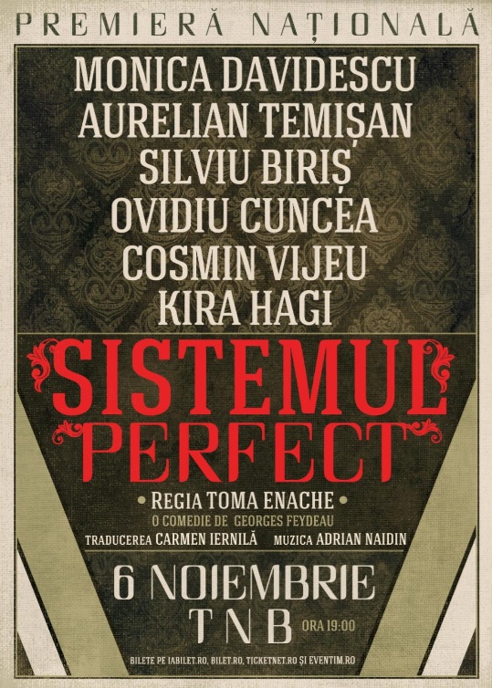Piesa de teatru „Sistemul Perfect” va avea premiera națională pe data de 6 noiembrie, ora 19:00 la Teatrul Național din…